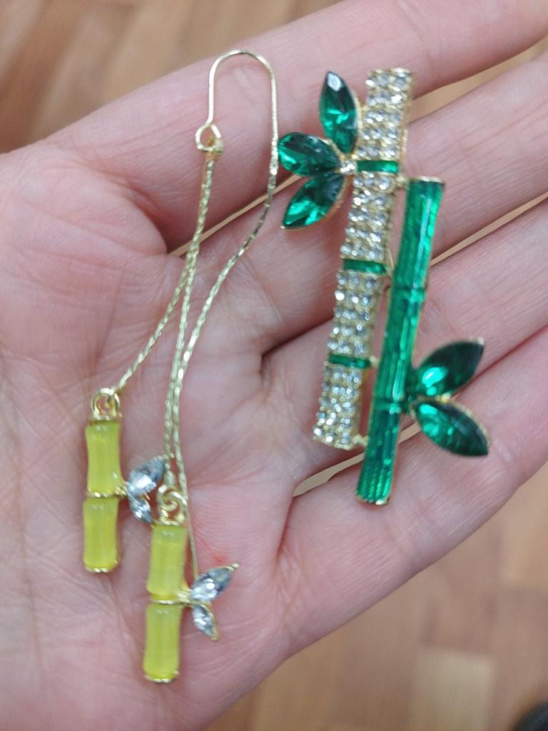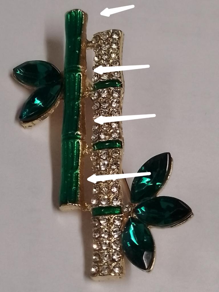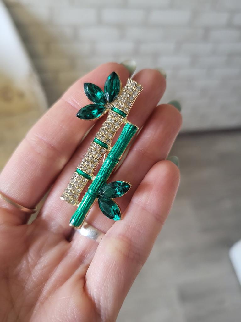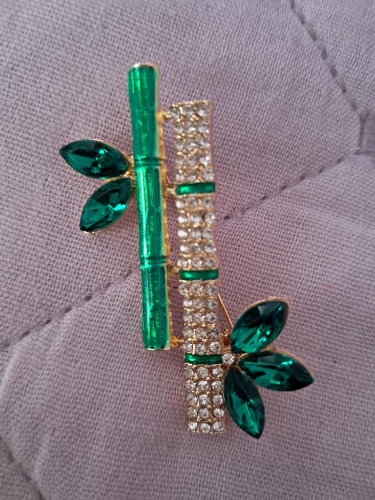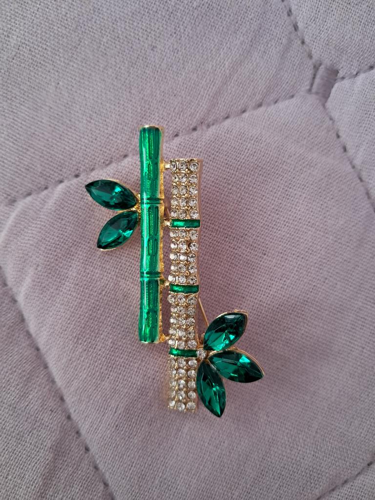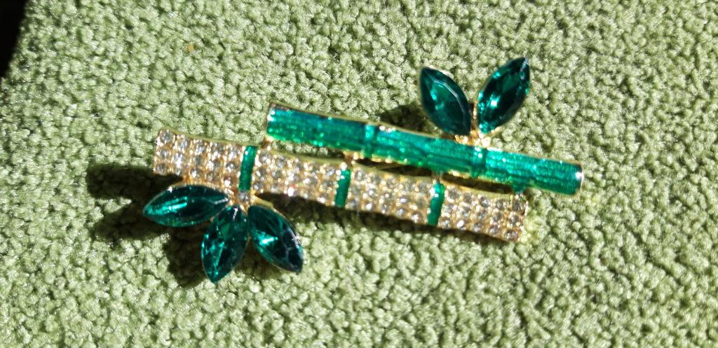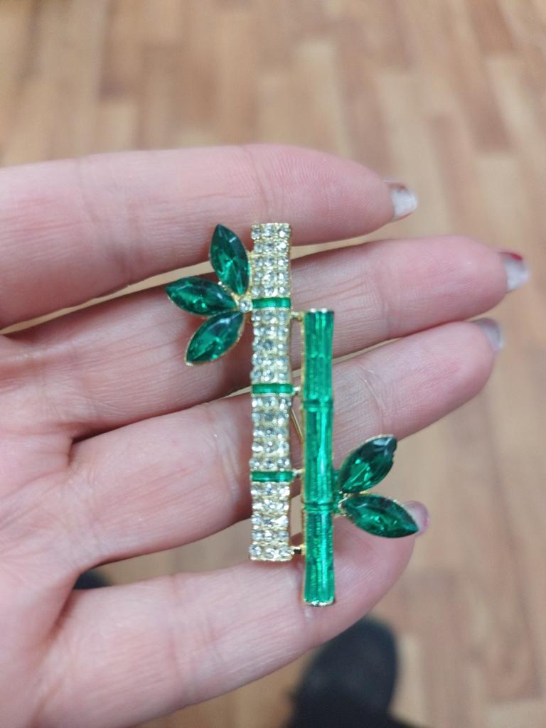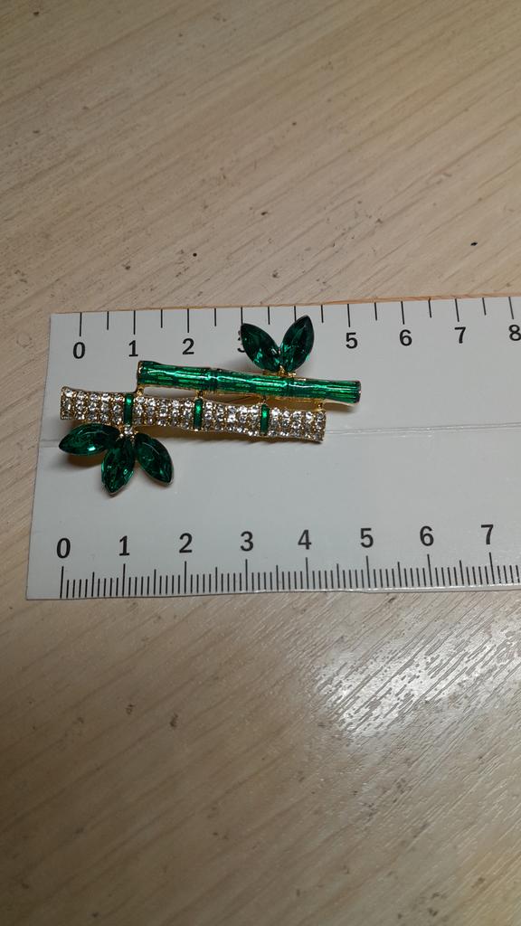 Beautiful brooch in the form of a bamboo branch, delivered in 2 weeks. Cool, will liven up a black jacket or sweater. Thank you.