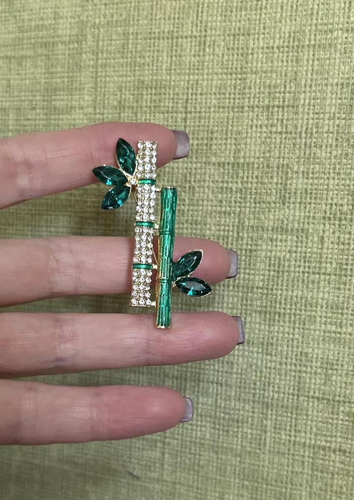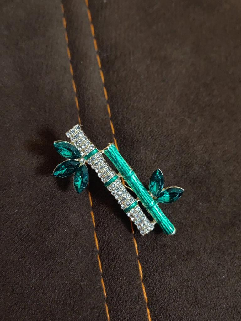 Elegant Retro Green Plant Bamboo Shape Brooch Pin For Women Collar Accessories