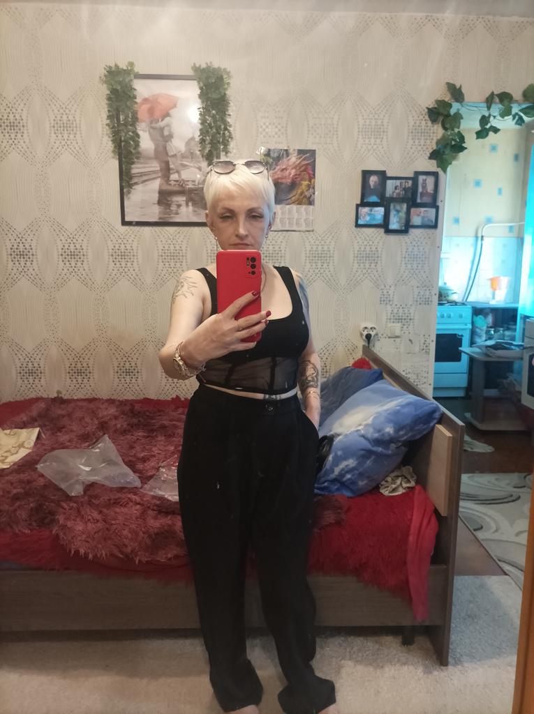 It would be possible to take S, a little wide in the back. But not critical. Looks good. The composition includes knitwear. The quality is good. It doesn't show through without a bra.
