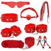 Sex Toys Kits for Couples PU Sex Bondage Set Handcuffs Sex Games Whip Gag Shackles Collar Fluff Stick Nipple Clamp For