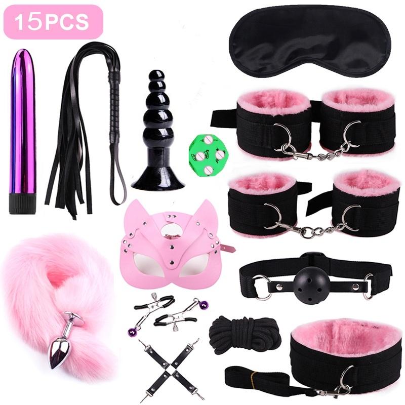 BDSM Kits Adults Sex Toys for Couples Handcuffs Nipple Clamps Spanking Paddle Sex Metal Anal Plug Vibrator Slave Bondage