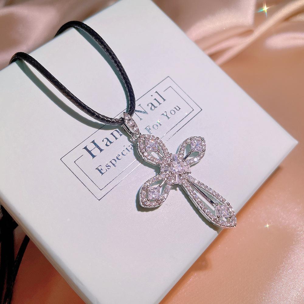 High Quality AAA Grade White Zircon Cross Necklace Men/Women Necklace Platinum Plated Party Wedding Jewelry Couple Gift Luxury Birthday Party Jewelry