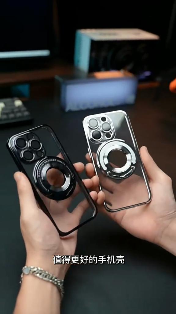 Plating Transparent Logo Hole Case For iPhone 13 12 14 Pro Max 11 13 Invisible Stand For Magsafe Magnetic Wireless Charge Cover