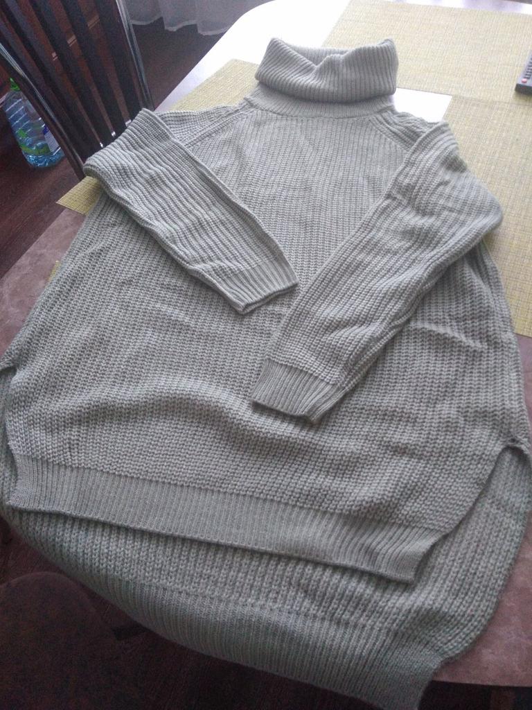 The elastic at the bottom of the sweater is pulled together and will never stretch to the required width. And the sleeve looks like it was taken from a child’s sweater: it fits around the arm, cut under the armpit, the length of the sleeve is 5 cm above the bone, the elastic stuck into the arm and does not stretch. The front and back are different lengths (see picture). What a beautiful sleeve in the picture and what do I have?