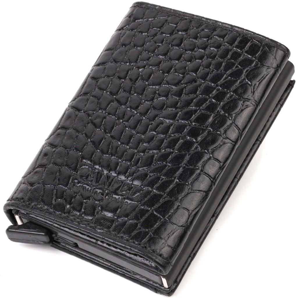 Unisex Tri-fold Automatic Cardholder Made of Genuine Leather with Crocodile Effect CANPELLINI 21930 Black