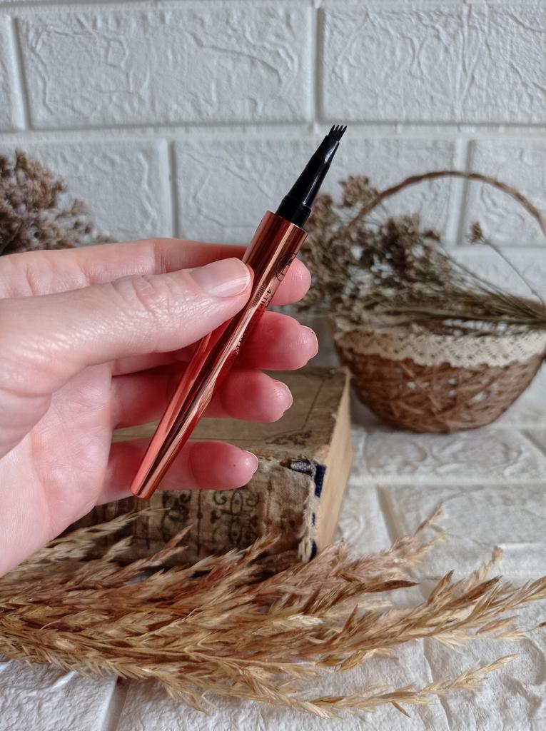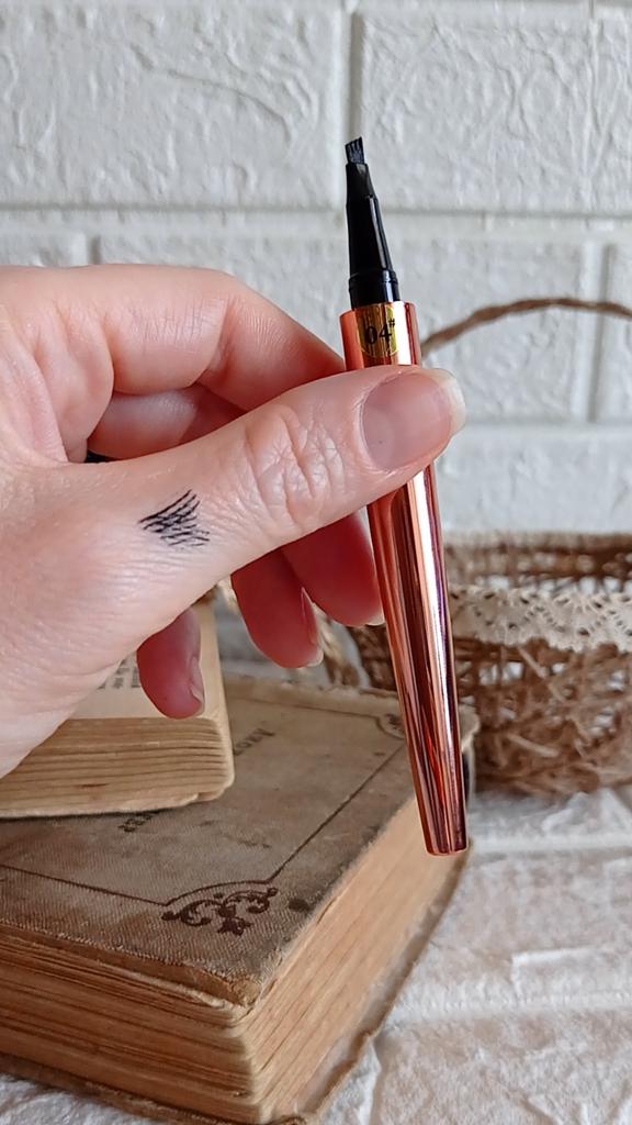 Eyebrow liner. Waterproof eyebrow liner with teeth allows you to highlight your eyebrows as naturally as possible, imitating natural hairs. Recreating the effect of microblading, fills them with rich color. The teeth of the tip release pigment in doses and allow you to draw hairs with the most natural look.. Does not rub off during the day, looks luxurious, regardless of weather conditions, ensuring durability and flawlessness of makeup even with an active lifestyle. Definitely recommend.