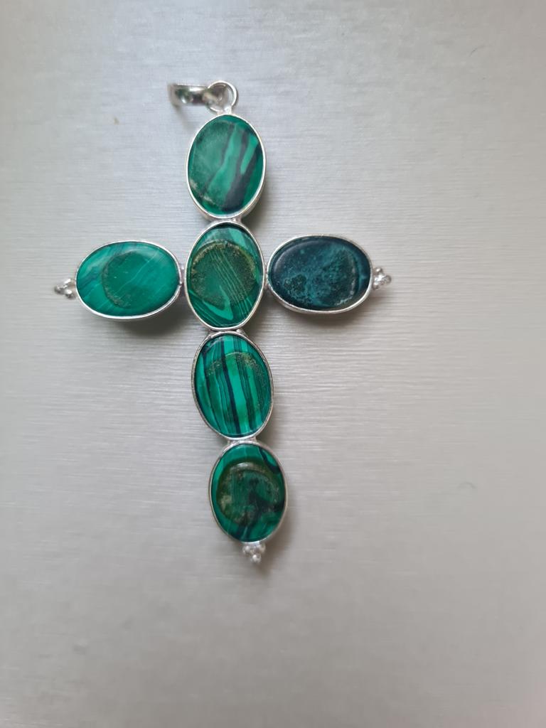 Malachite Gemstone 925 Sterling Silver Plated Gifted Cross Shape Pendant Jewelry NST-J2H3122