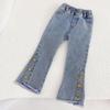 Toddler Baby Girls Jeans Casual Elastic Waisted Flare Pants Cute Sweet Denim Jeans Bell Bottom Trousers with Pocket 3-8Y