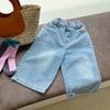 2. Girls' solid color loose straight leg jeans, children's elastic waist casual pants, highlight the sweet and lovely baby. They can wear it in spring, summer, autumn and winter.