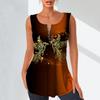 Women's Fashion V Neck Shirts Casual Tops T-shirt Ladies 3D Golden Bird Print Vest Plus Size Sleeveless Blouse Tank Tops