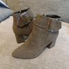 New Women's Shoes Suede Pointed Short Boots Thick Heel Belt Buckle High Heel Fashion Boots