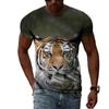 Fashion Handsome Animal Tiger Print Men T-shirt Summer Trend Casual Personality Hip Hop Street Style O-neck Short Sleeve T-shirt