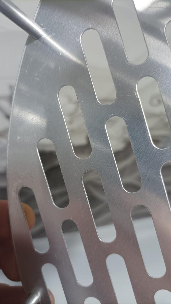 Material: aluminum, not stainless steel as described. Crooked and uneven, product image and description, gives hope for a much better product despite the low price.