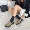Oxford Shoes for Women Slip On Round Toe Mary Jane Shoes Woman Metal Chain Square Heels Leather Shoes Female