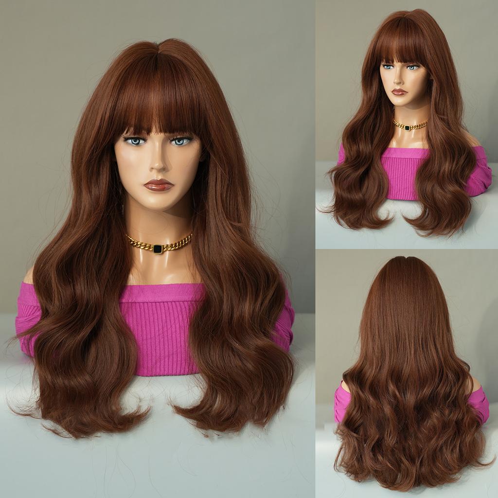 Women's Simulated Wig 60cm Hair Brown Hair Wavy Wig Full Head Cover Rose Hair Net Headwear Beauty Decoration Wig