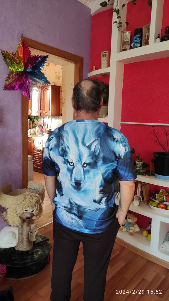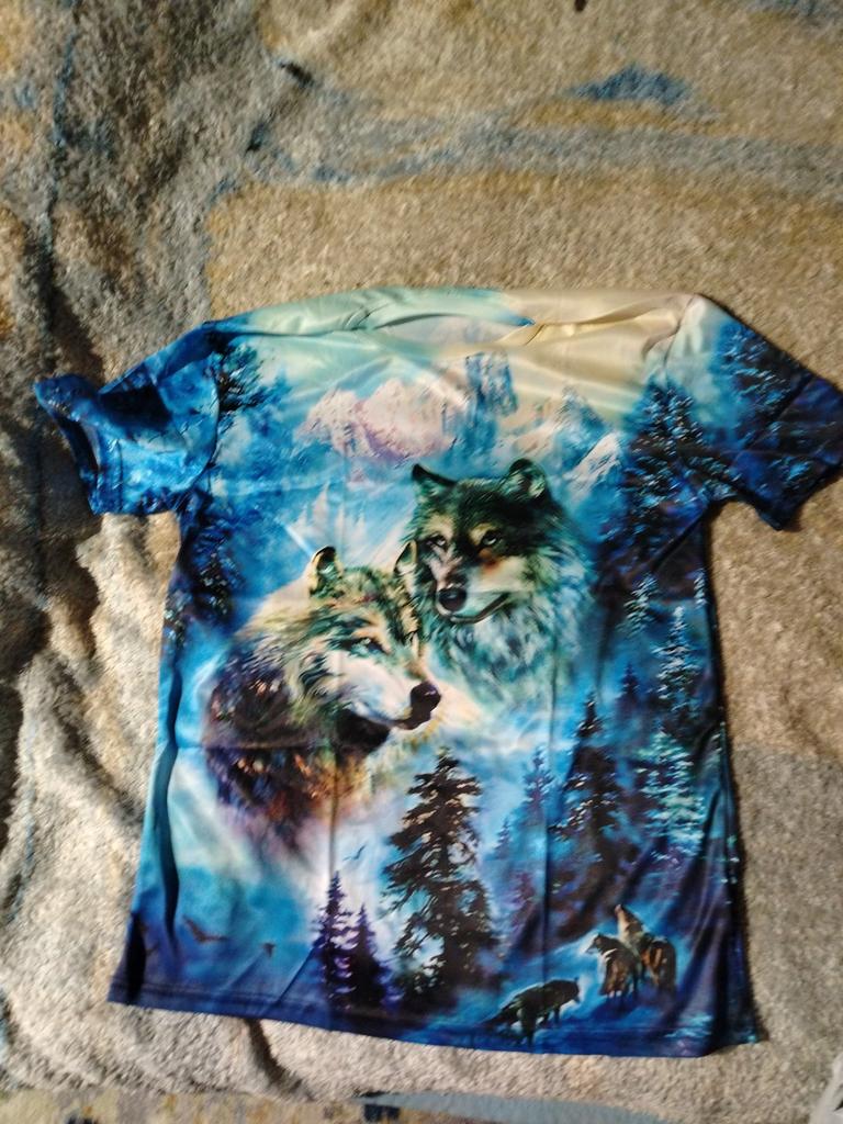 Super magnificent t-shirt very pretty 3d wolf t-shirt of very very good solid quality does not frace light I advise you I recommend it to you seller I thank joom cordially mercy