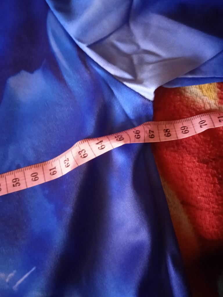 Very good product, nice print just like in the photo, size just as in the size chart. I give 4 stars just because of the fabric which is good but synthetic which is not good for some people, it would be much better if it had a part of cotton. But it is completely as in the photo and description.