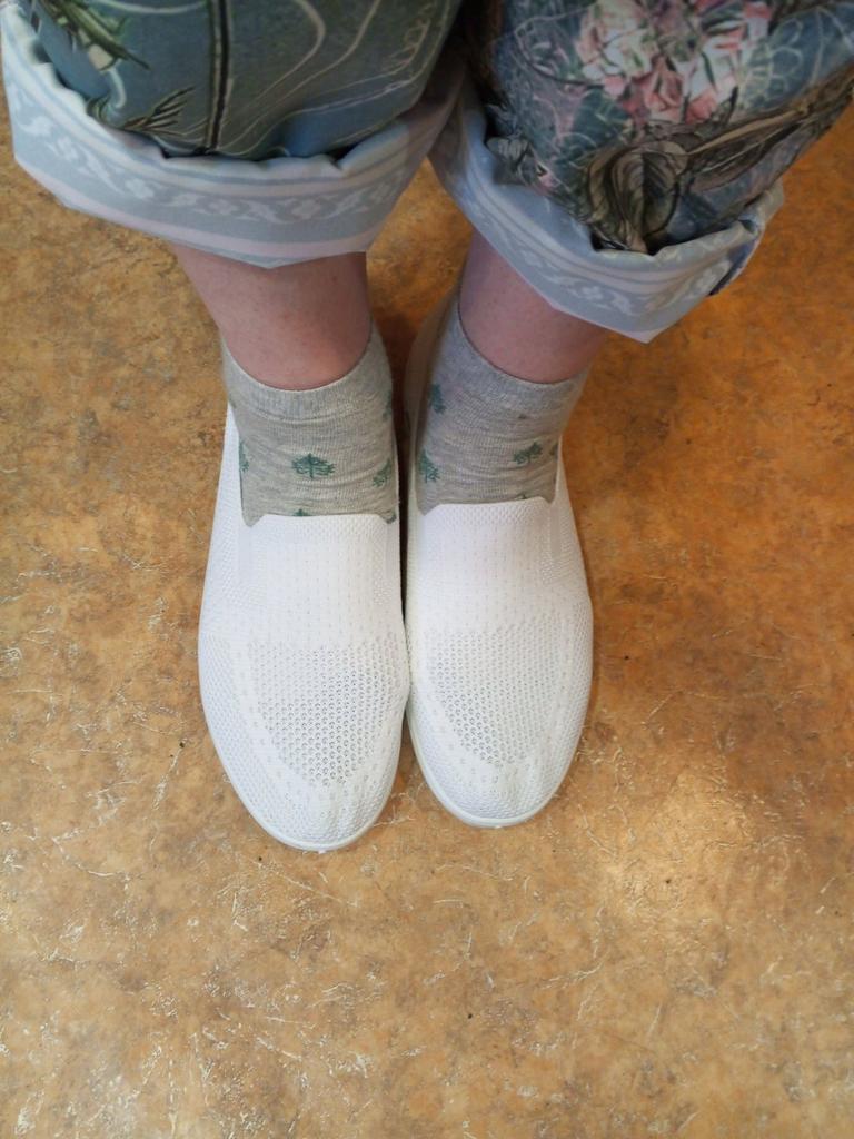 the shoes are just too small, there is no room for the toes, I would like to get 2 sizes bigger. they seem nice for inside, I am not mobile, I only walk around the house with a special indoor walker. I am busy in the creative field. I am 84 years old and the word lonely or bored does not fit me. tell me how I work now, thank you, will