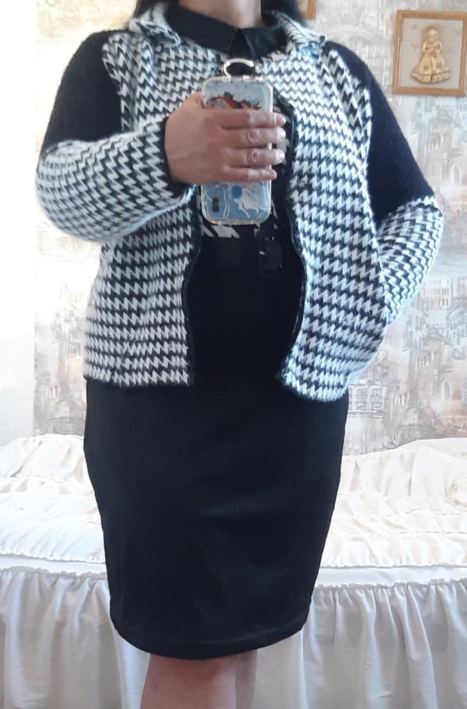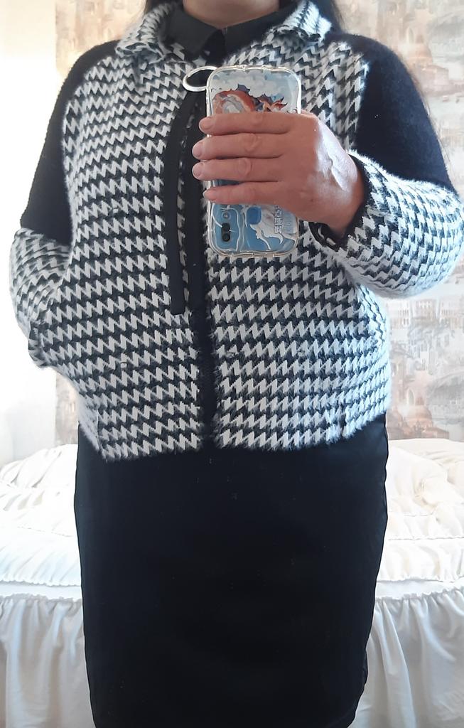 My size is 44, it fits well, I could have taken a size larger, it would have looked looser. It looks beautiful, unusual, stylish. I recommend it