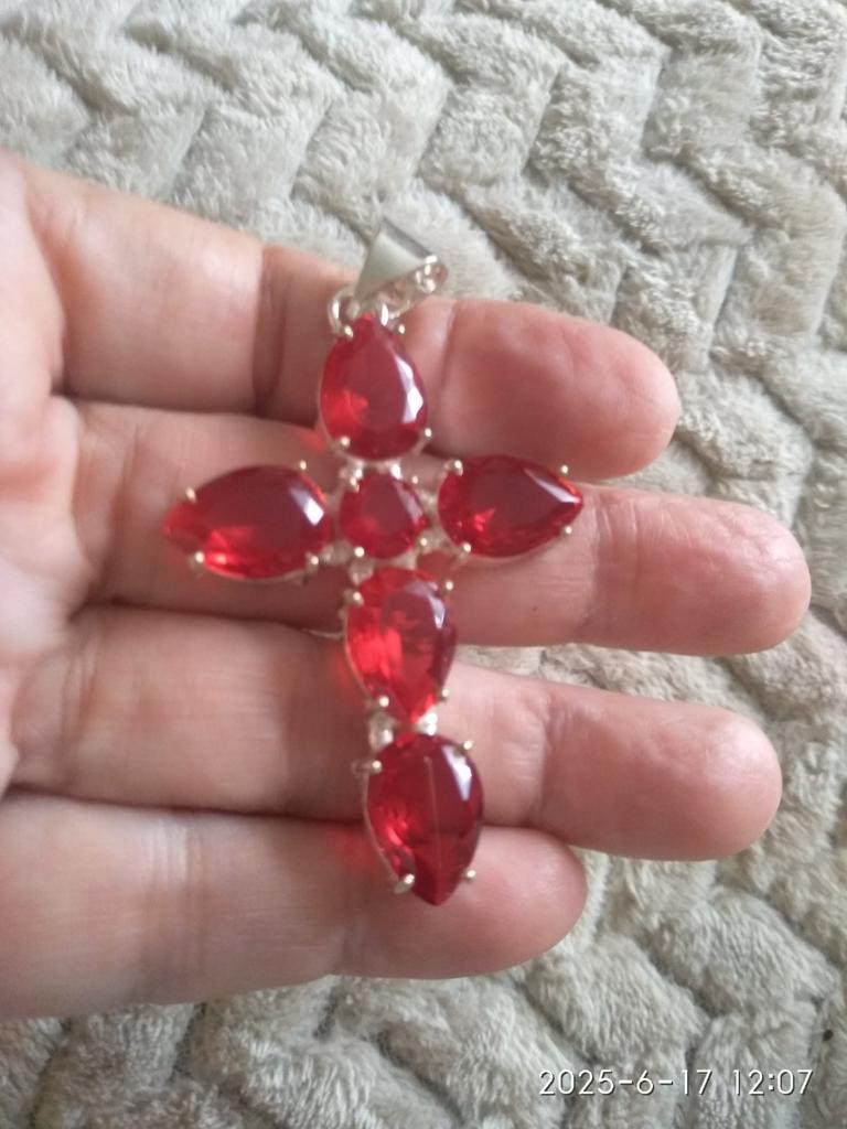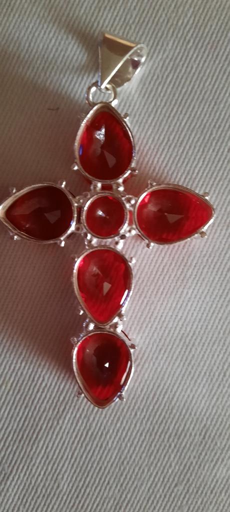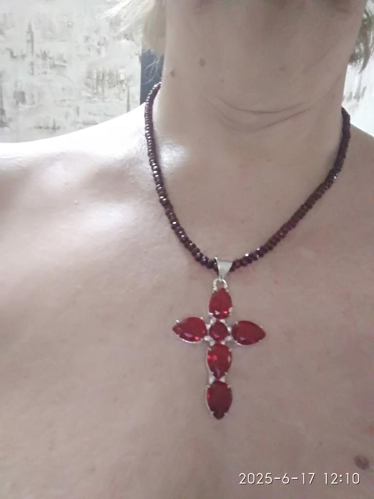 I received a Mozambique garnet cross. A beautiful decoration, the stones shine, it is made carefully, the length of the decoration is 6 cm, the width is almost 4 cm. It has a silver hallmark. It is packed in a plastic box and a bag. It is well packed, everything is intact. Thank you!
