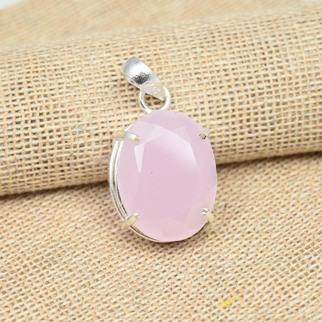 Pink Chalcedony Gemstone 925 Solid Silver Handmade Jewelry Women Pendant Valentine's Day Gift