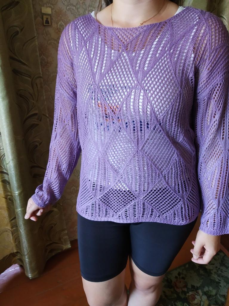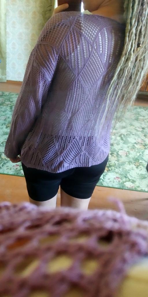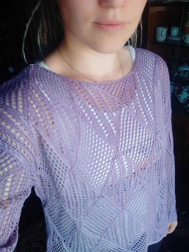Beautiful, openwork knitting, made from cotton, so after washing it may fray or shrink. And you have to wear a T-shirt under it, because everything is see-through
