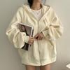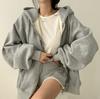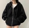 Loose Hoodies Women Autumn Winter New Casual Long Sleeve Zip Up Hoodie Chic Vintage Solid Draw String Sweatshirt
