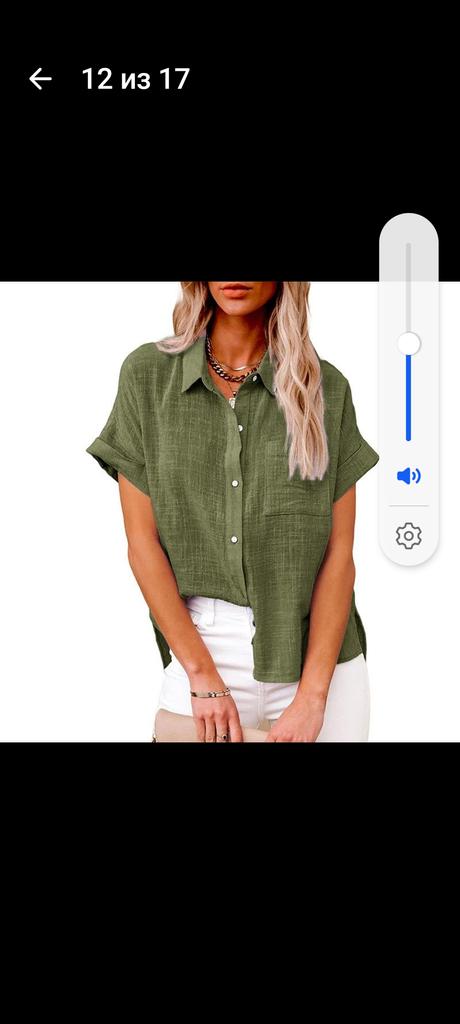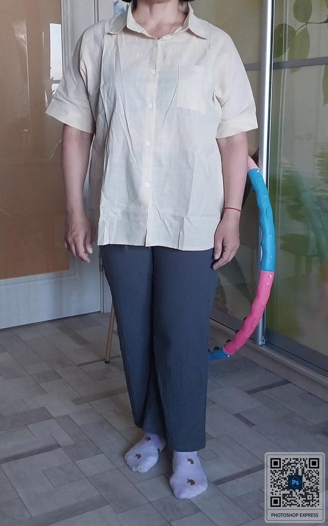 The blouse is big for size 52-54. It was quite possible to order XL. I ordered gray. The color of the blouse does not correspond to the rich color in the photo. In reality, it is pale gray, like a dirty white blouse. In general, there is something strange with the color.