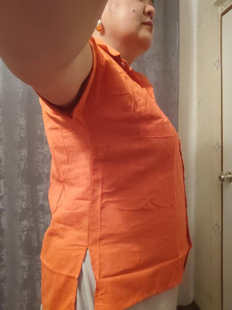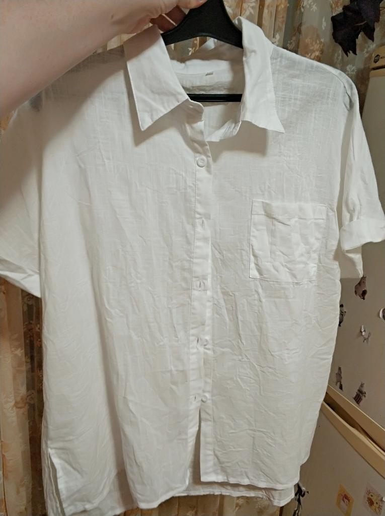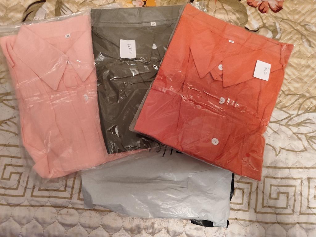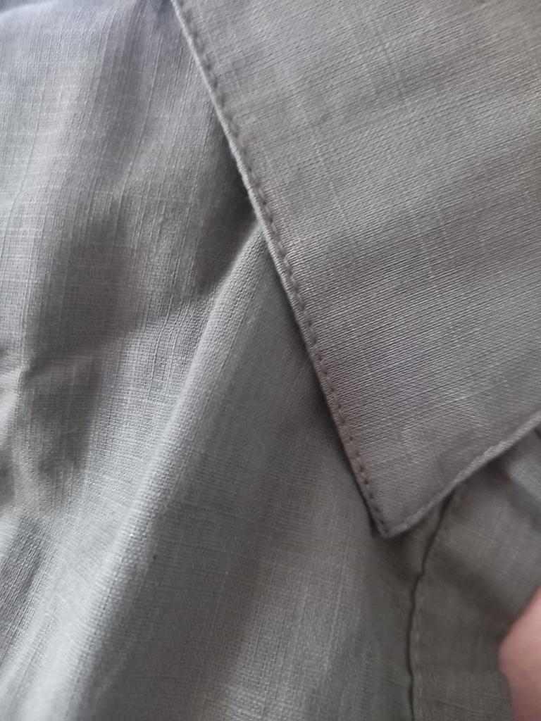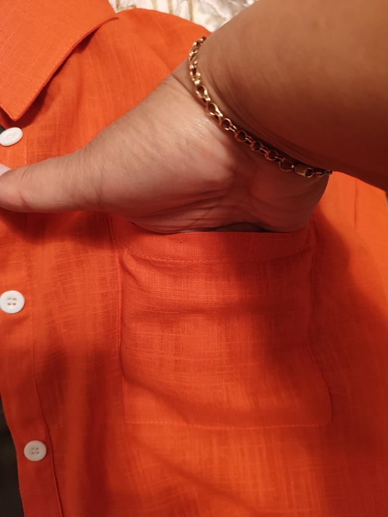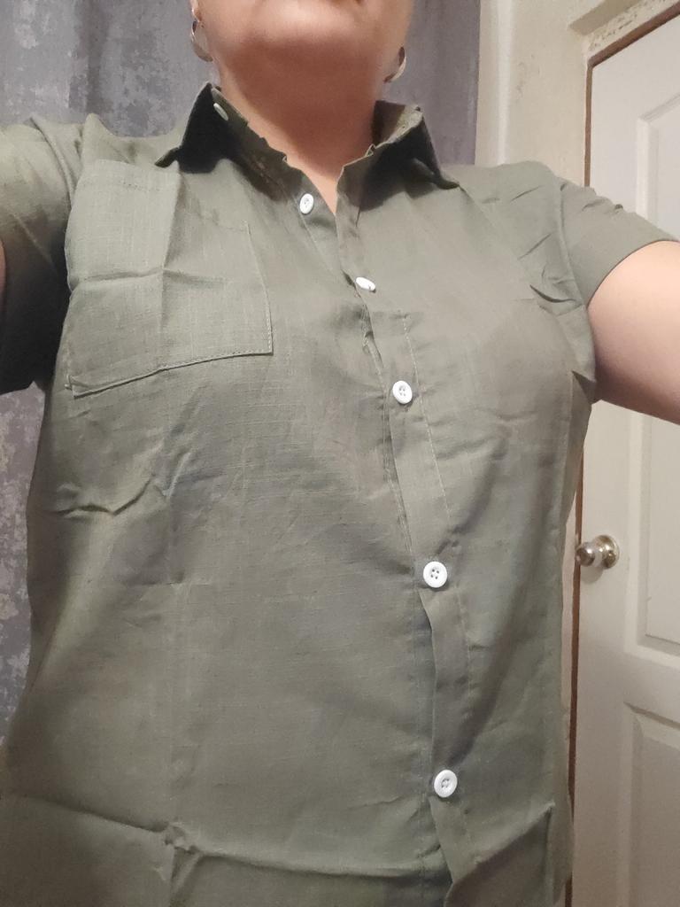 The shirt is wonderful. The only drawback is that the khaki shirt has white buttons sewn on it. I replaced it with coconut ones. 3xl fits 50-52, bust size 102. Loose fit. Moderately free. I washed it on the general cycle, temperature 30 degrees. The fabric became softer and did not shrink.