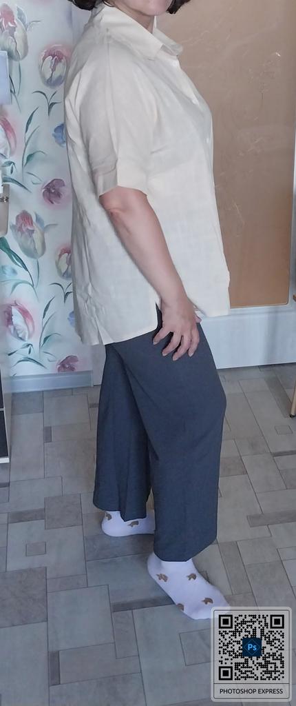 I really liked the shirt! On her 50th birthday, she took an XL - free. It was also possible to order L. The color is as in the picture, the quality is good. I will order again in another color. Thank you very much!!!