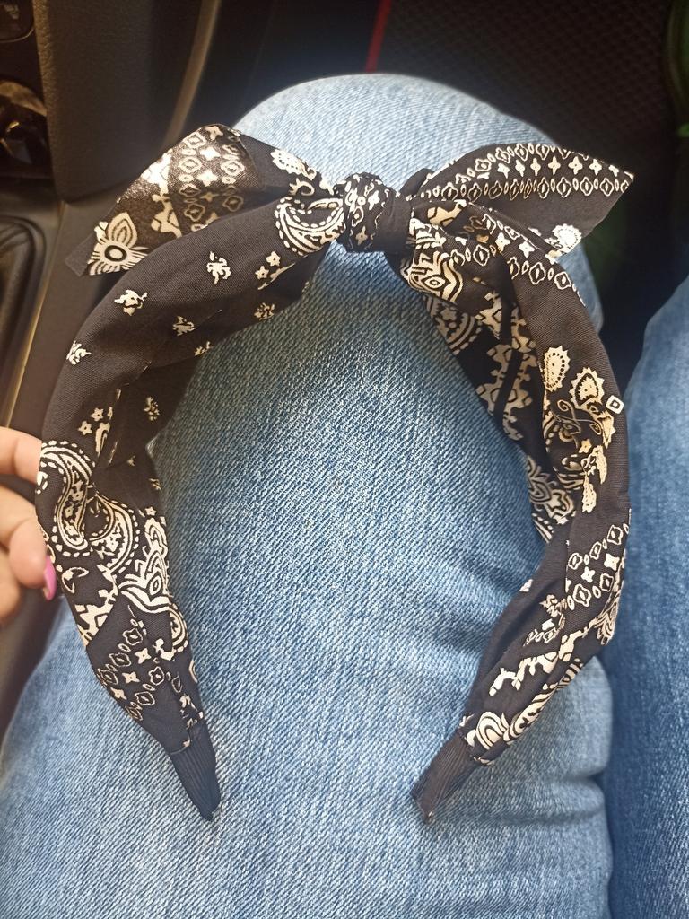 Very cute headband, flirty bow. I also bought the same one in red. I have a problem, not all headbands fit, they often put pressure on the temporal part of the head, but these fit very softly and at the same time hold my hair well. Today I updated it, I wore the headband all day and did not experience any discomfort. I recommend for purchase.