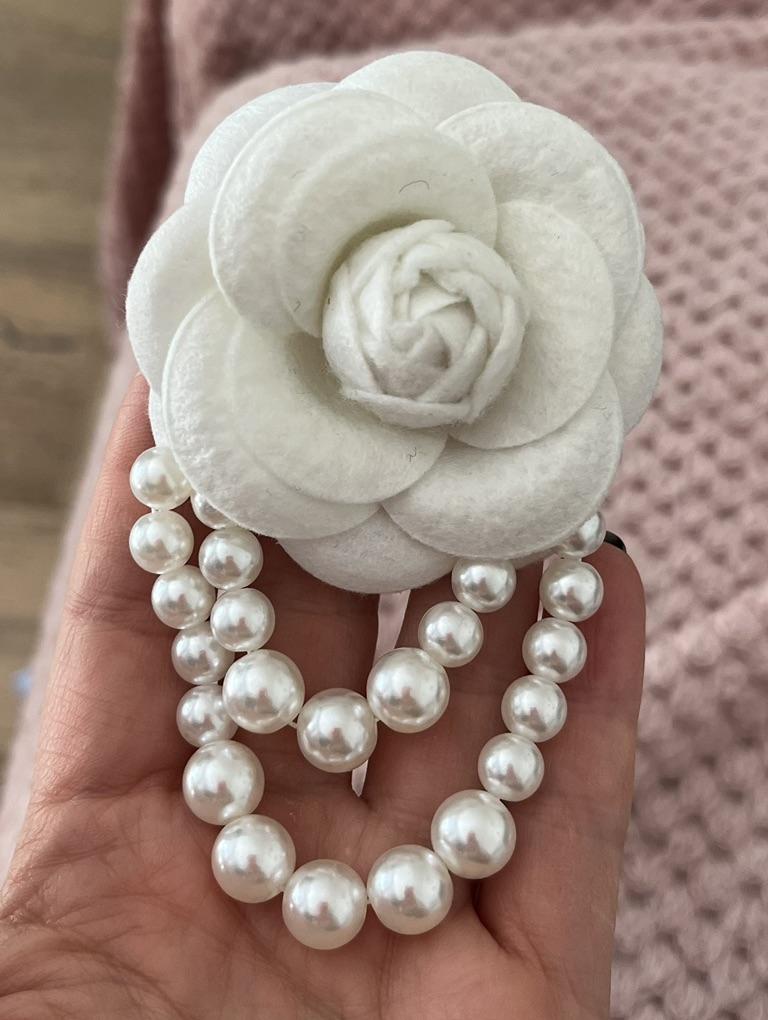 Rose Brooch Elegant Vintage Flower High Gloss Faux Pearl Chain Hat Shawl Scarf