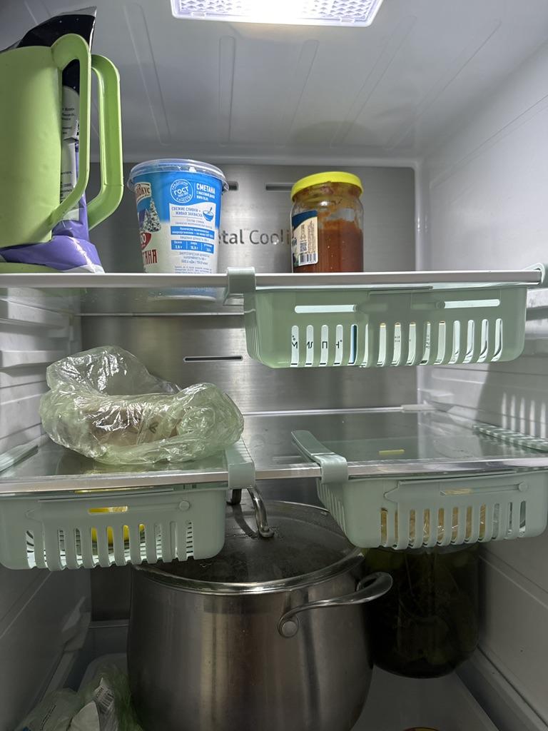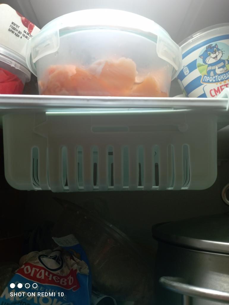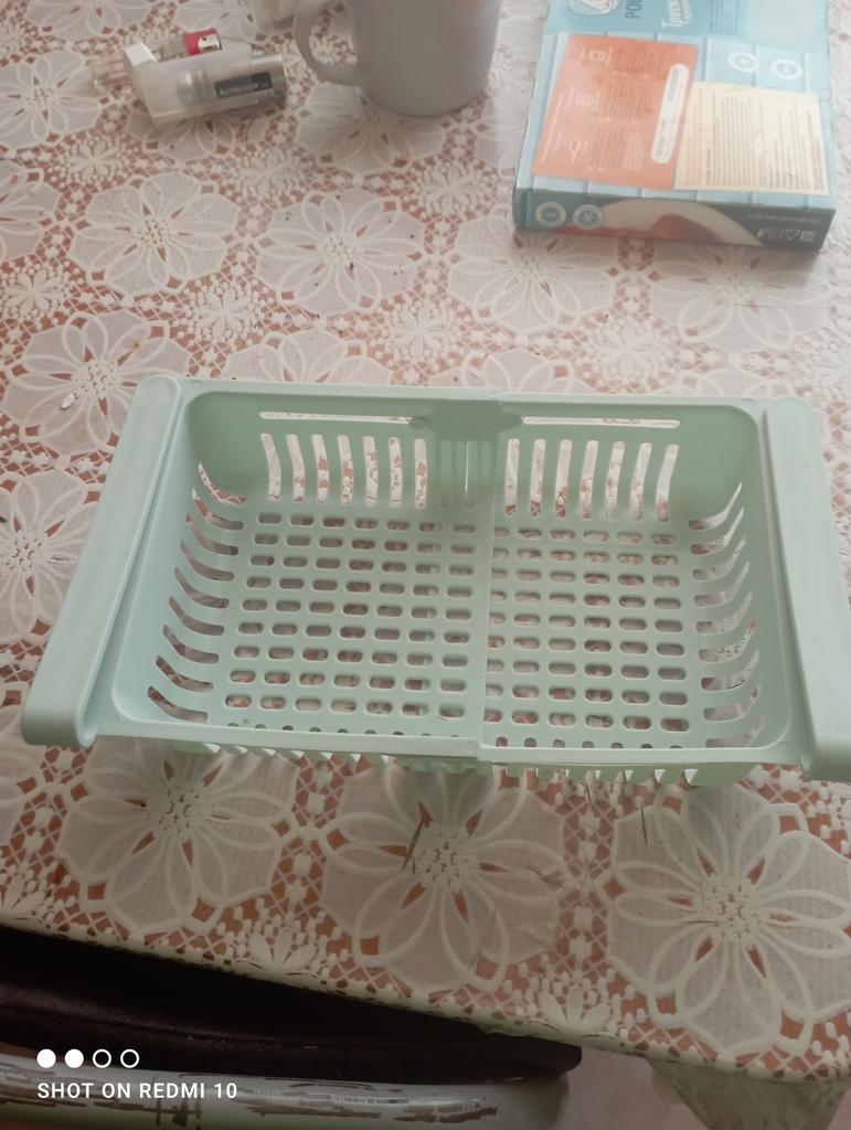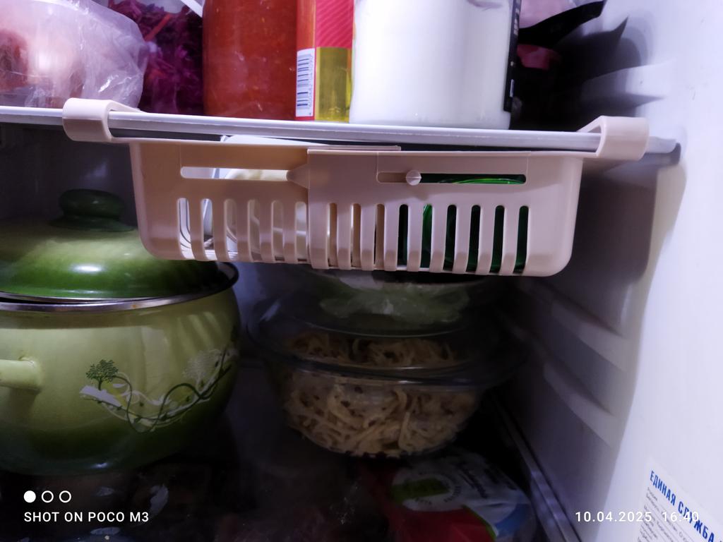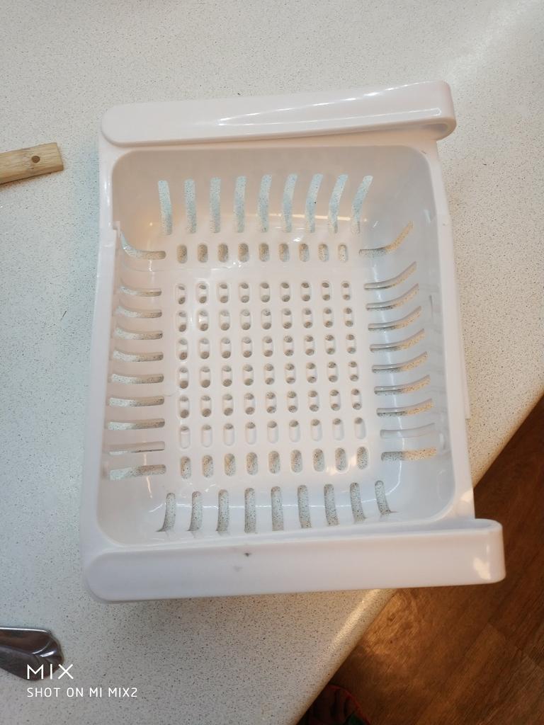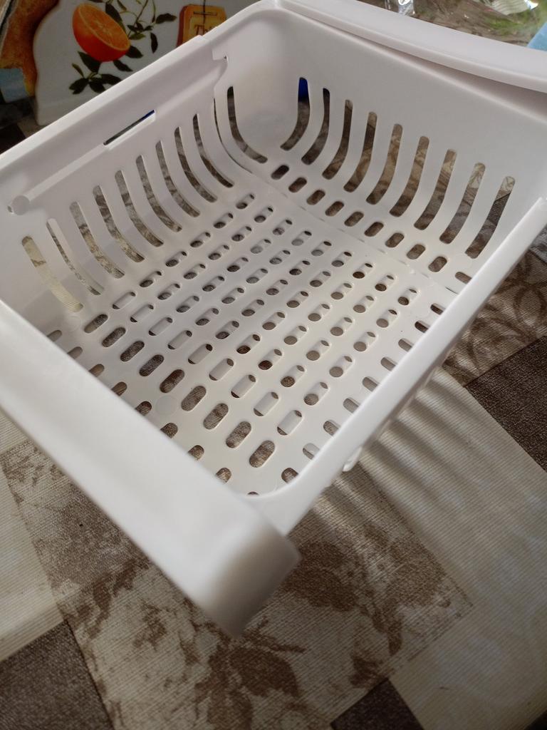A very convenient container for the refrigerator, extension of the shelf, sliding. Thank you.