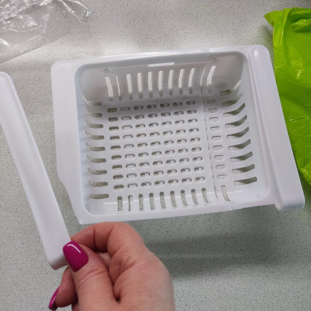 Convenient and useful storage box for the refrigerator, roomy if you expand it