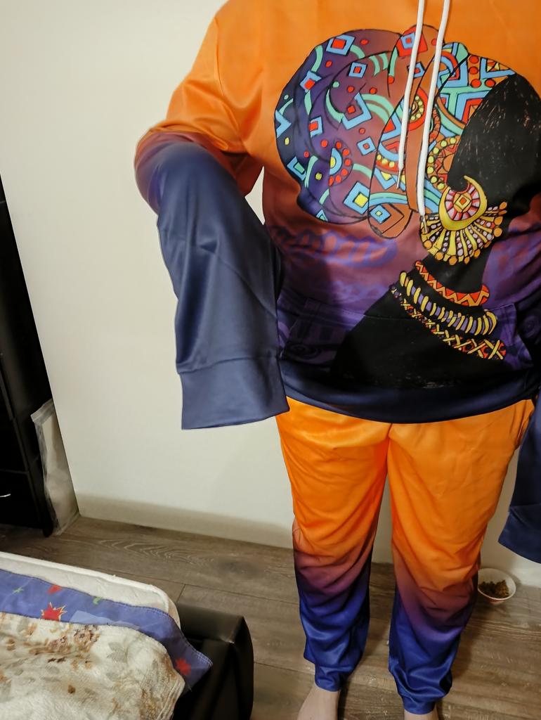 Size:XXL, Bust:120cm, Length(Top):77cm, Shoulder:56cm, Sleeve:77cm,length(Pants):108cm,waist:80cm,Hip:115cm