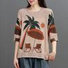 Cotton Sweater Women Plus Size Autumn Loose Round Neck Retro Printing Sweater Comfortable and Versatile Elastic Knit Sweater