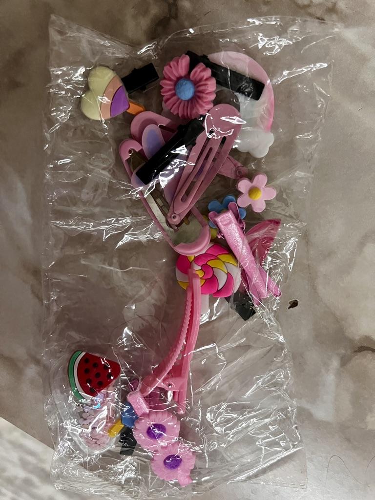 Normal hairpins. True, the flower made of threads flew off right away) And the hairpins themselves bend. Made of soft metal.