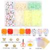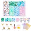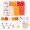 1set 6 Grid 6mm Acrylic Bead Letter Kit Flat Circular Transparent Polymer Clay Bead for Jewelry Making Kit with DIY Bracelet Necklace Elastic Rope Box