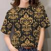 Summer Women's T-Shirts Short Sleeves 3D Tops Baroque Tee Tops Female Tee Casual O-Neck Oversized T-Shirt