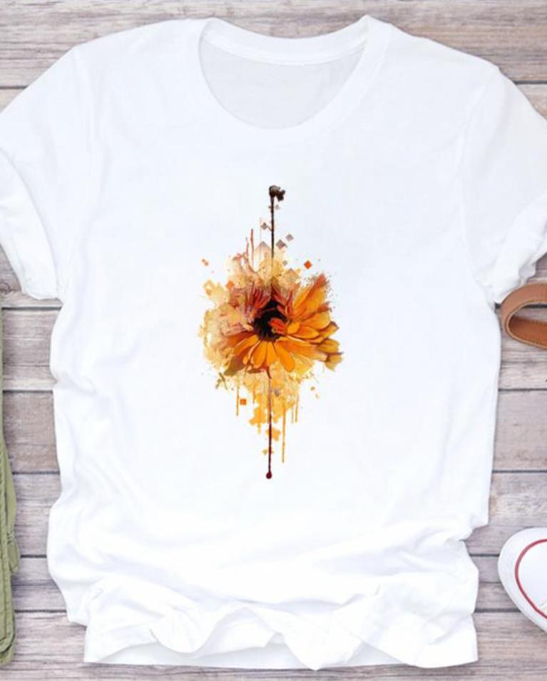 (Asian Size) T Shirt Top Fashion Plant Trend Style Lovely Trend Casual Clothing Tee Short Sleeve Women Print Lady Female O-neck Graphic T-shirt