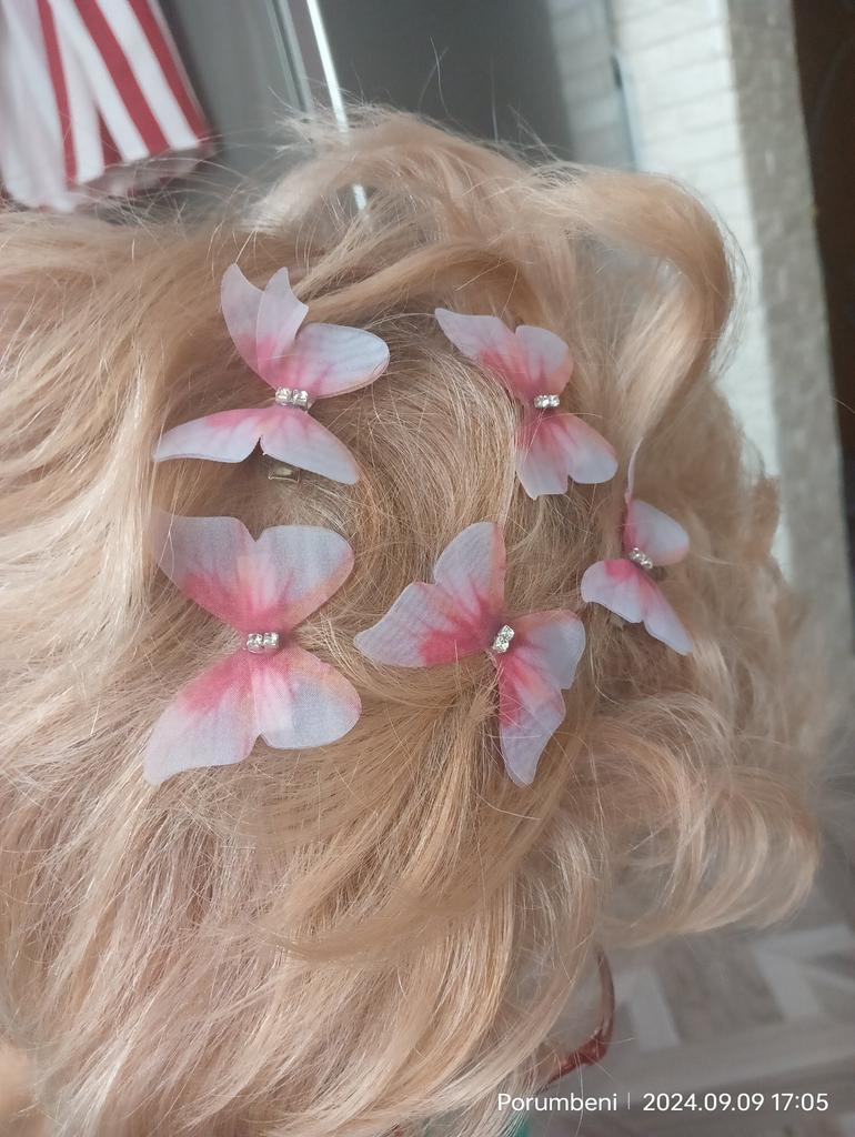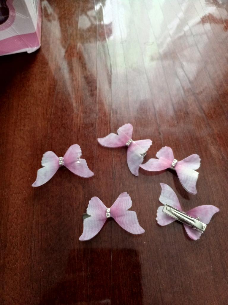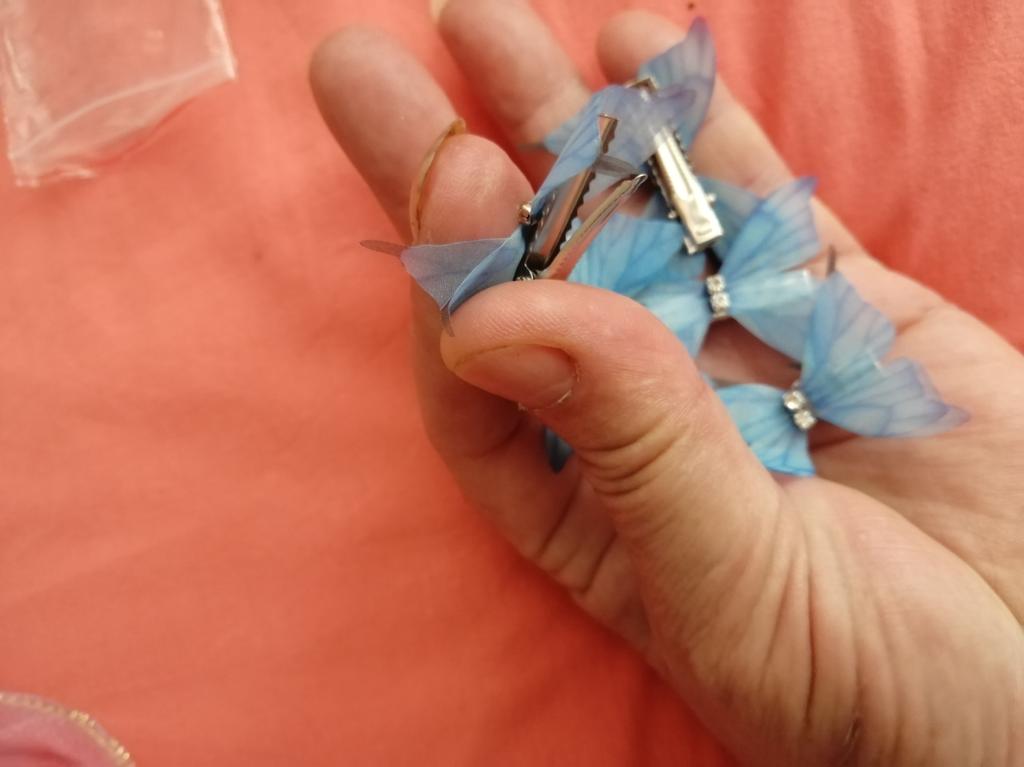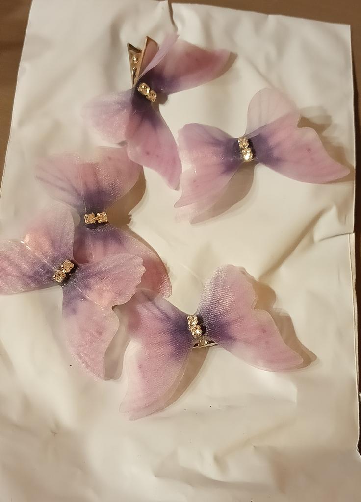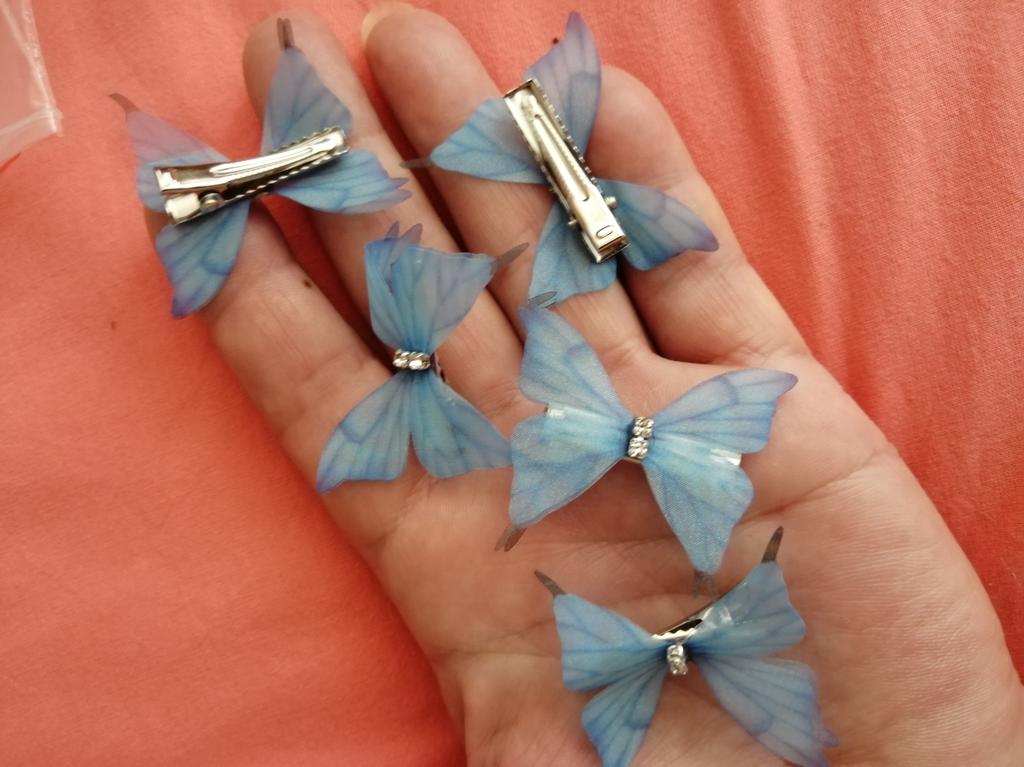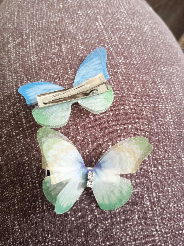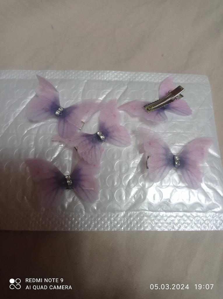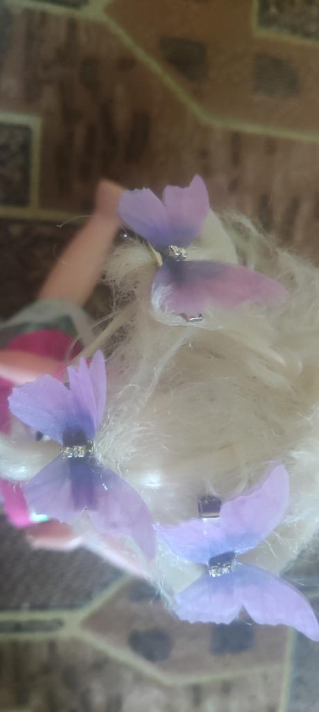 Hairpins are wonderful, more beautiful in real life than in the photo. They look like real ones. 3 pieces out of 5 arrived. Daughter likes to put them on the dolls' heads, because there are convenient "crocodile". Butterflies are stuck on stationery glue so far, but they are easy to tear off (it would be better if they were attached to the middle of the hairpin), pull once and it will come off.