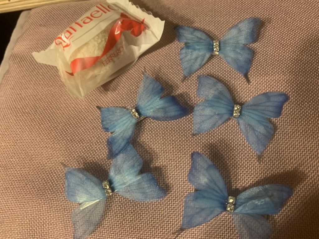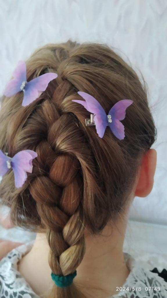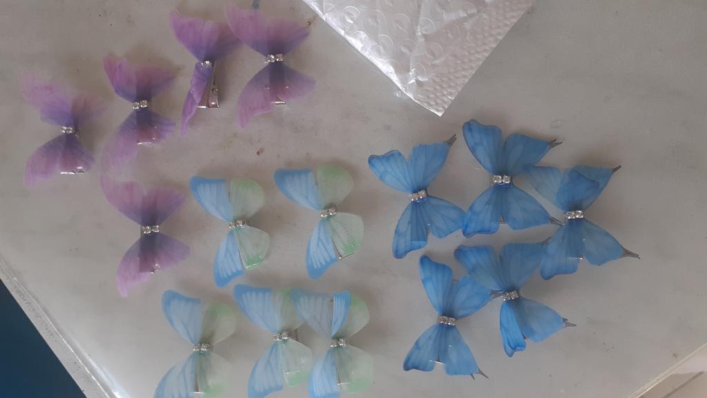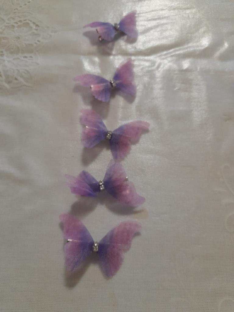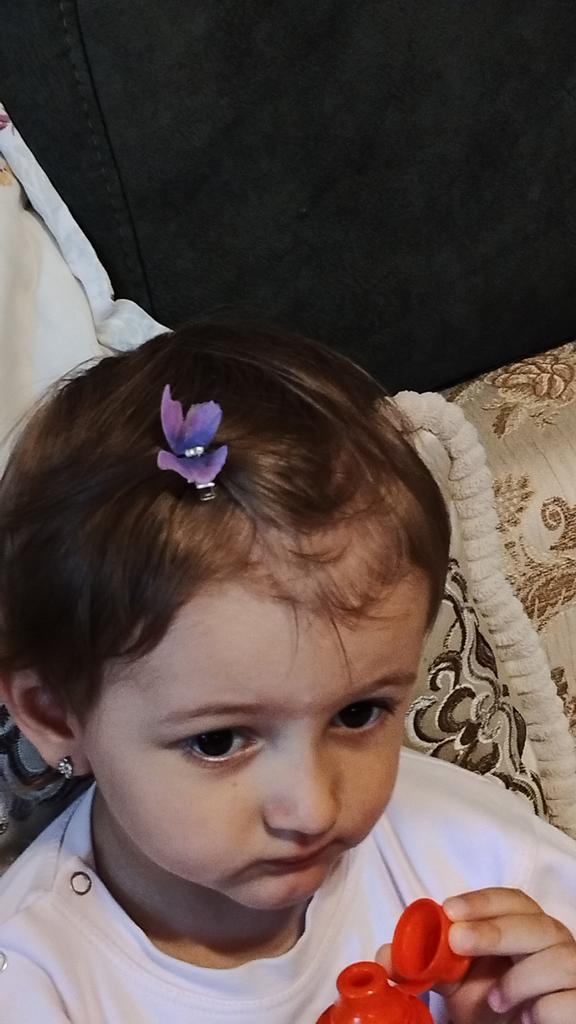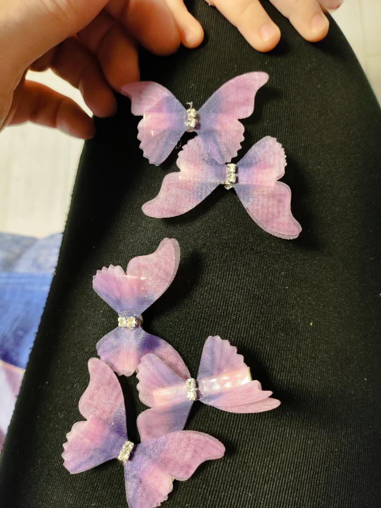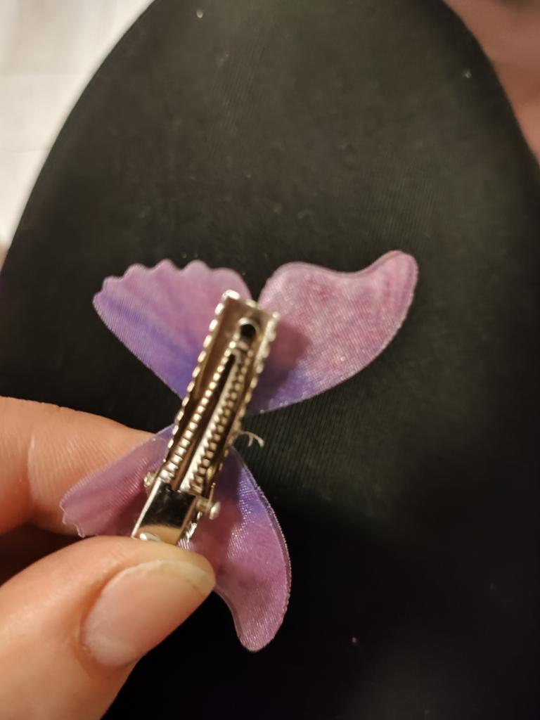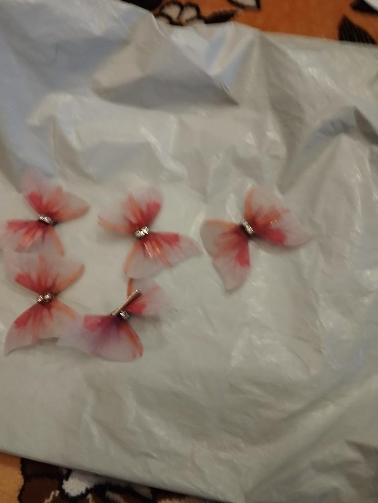 Hairpins are wonderful, more beautiful in real life than in the photo. They look like real ones. 3 pieces out of 5 arrived. Daughter likes to put them on the dolls' heads, because there are convenient "crocodile". Butterflies are stuck on stationery glue so far, but they are easy to tear off (it would be better if they were attached to the middle of the hairpin), pull once and it will come off.