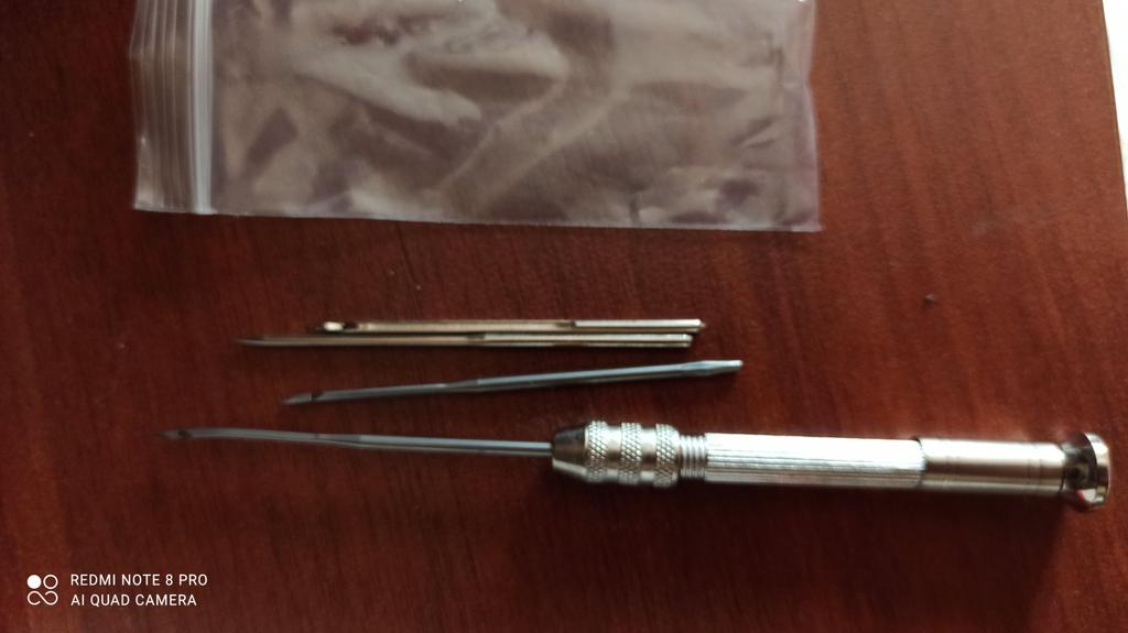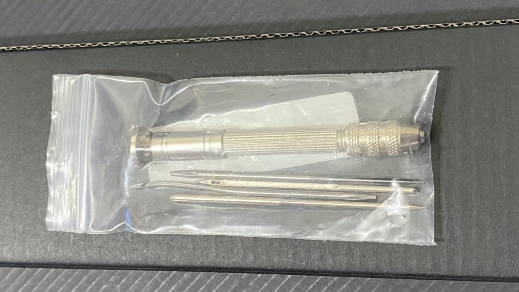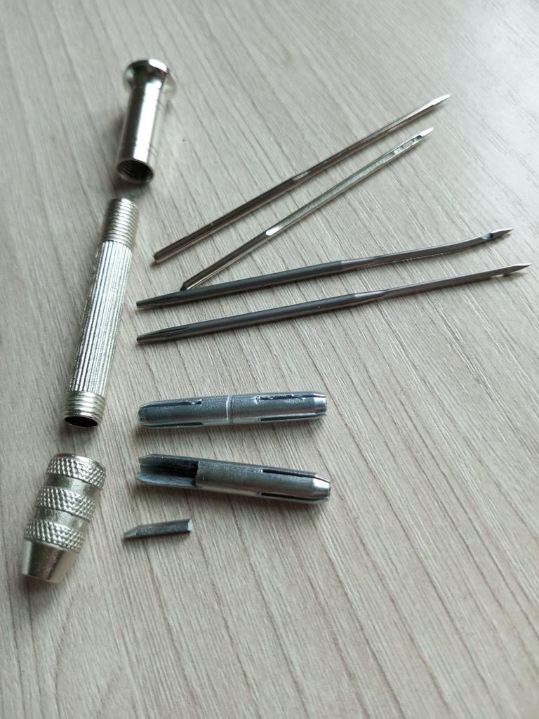 Good tool, I accidentally unscrewed the handle and discovered an additional double-sided collet and at the output there are two double-sided collets for needles of any thickness. I am satisfied.