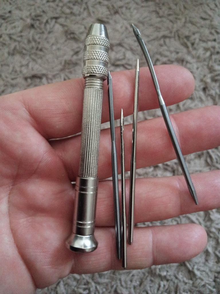 I ordered myself a complete set of all possible types of awls. Now sewing hard materials is a complete pleasure!