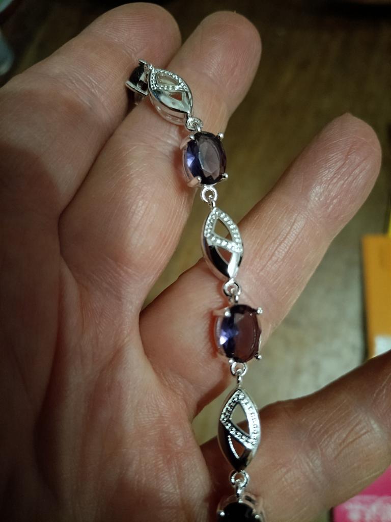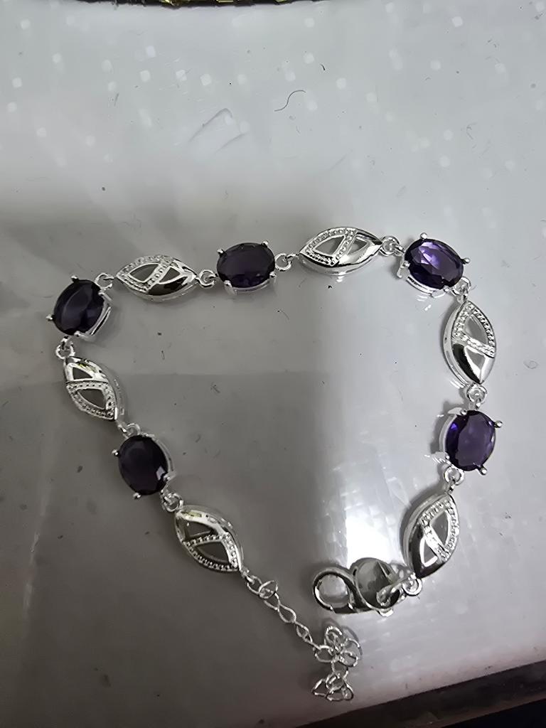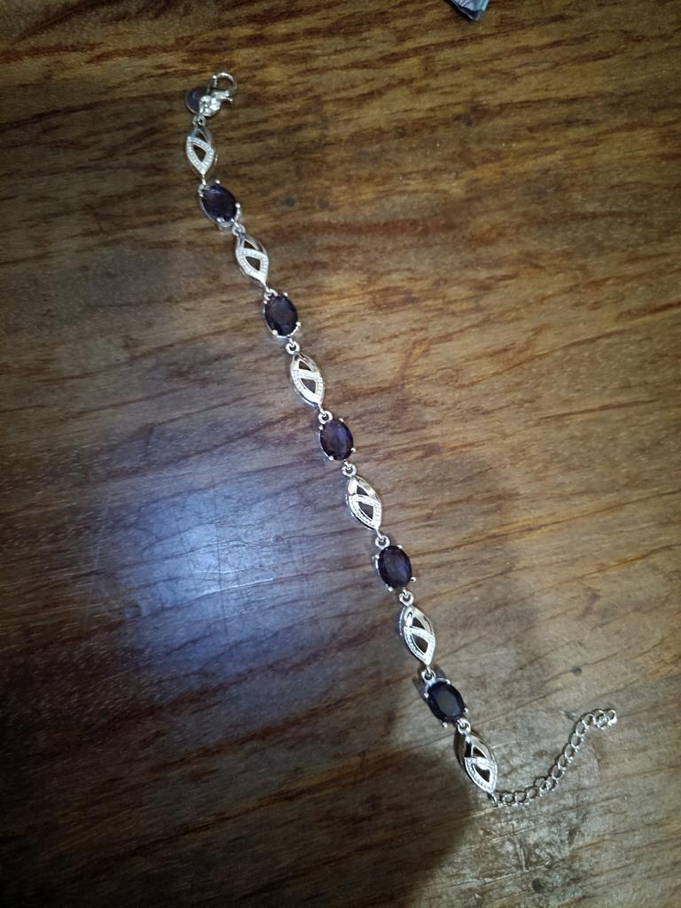 Delicate silver bracelet with small lilac stones. The work is neat. There is a stamp with a sample.