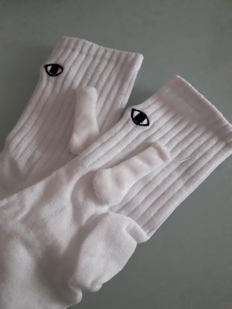 1 Pair Club Celebrity Ins Fashion Funny Creative Magnetic Attraction Hands Black White Cartoon Eyes Couples Sox Socks