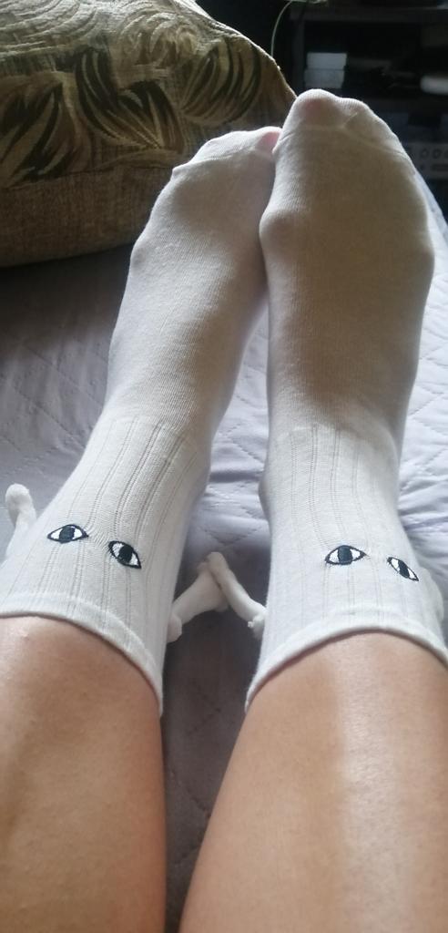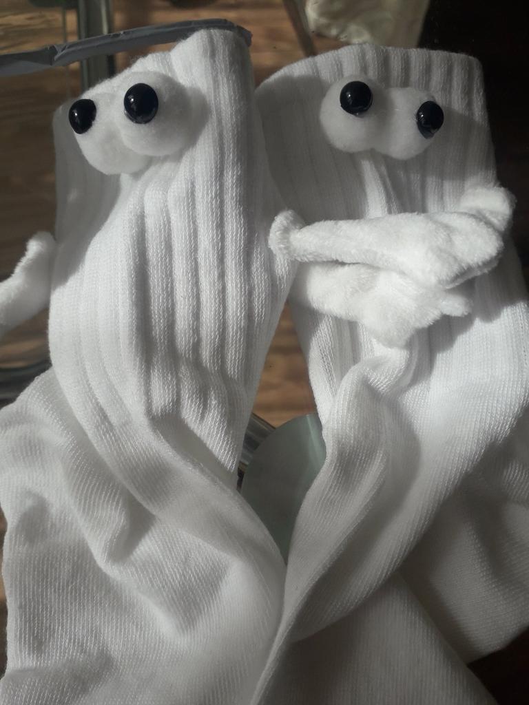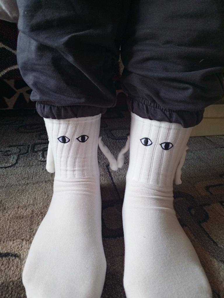 The eyes on the socks are not the same as in the first photo) But the quality is good. The magnets are not super strong, but they hold
