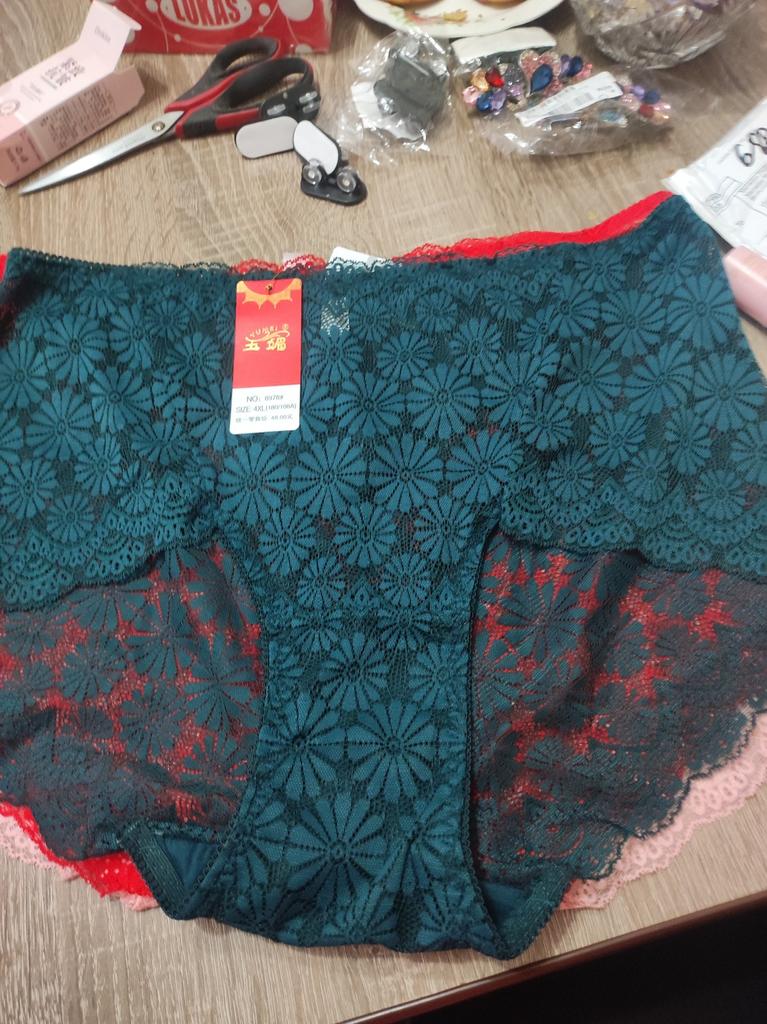 Trussardi is luxurious! Lace, strong, high waisted, rich color, do not fade... They look sexy... 4Xl - for a 56 butt. This is not the first time I buy. I'm happy with the purchase.