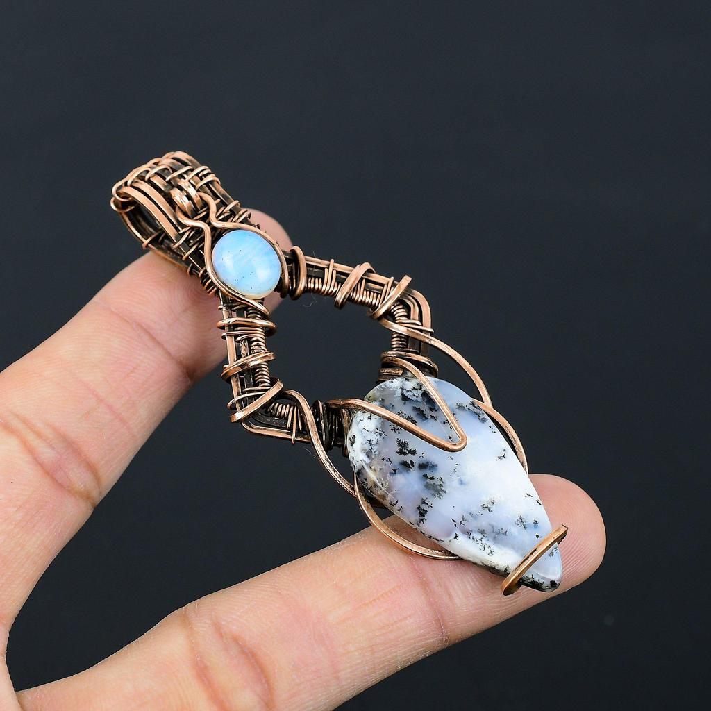 Dendrite Opal Gemstone Pure Copper Wire Wrapped Handmade Pendant Jewelry