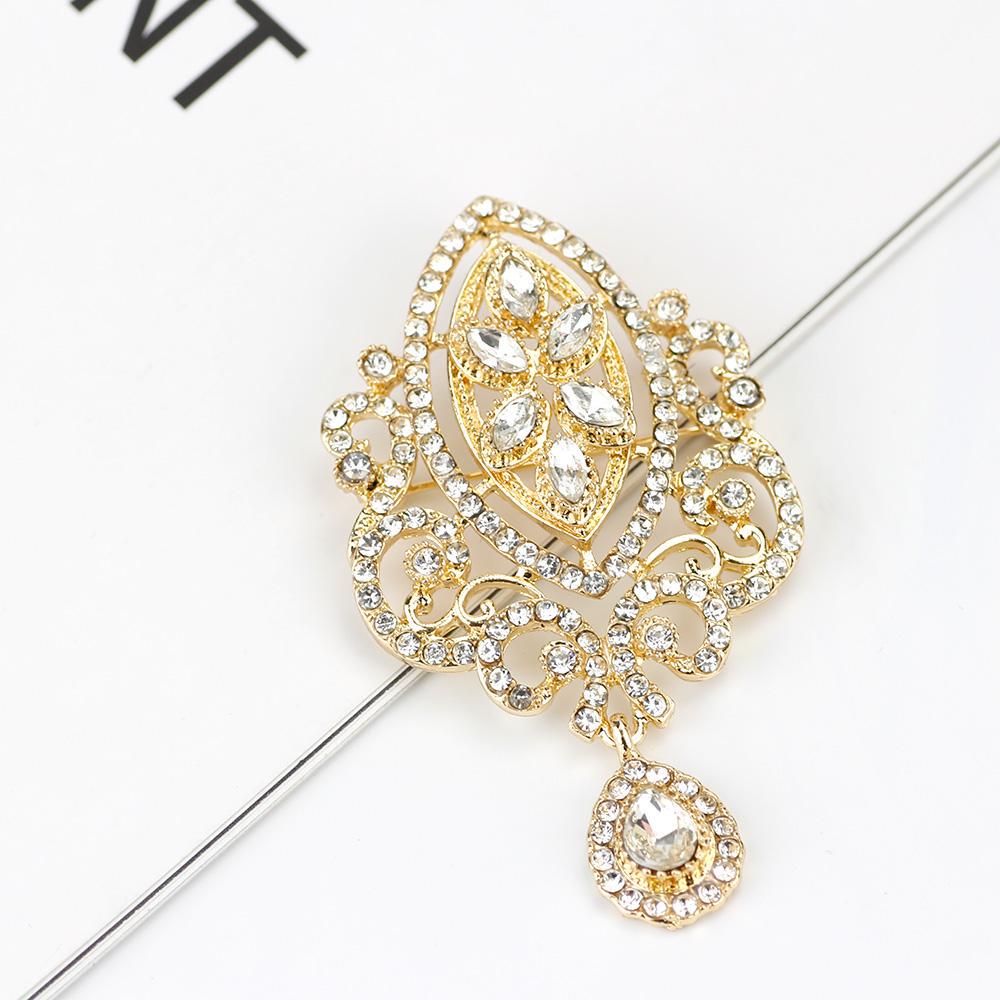 Gold Color Crystal Bride Wedding Jewelry Brown Brooch Flower Type Jewelry